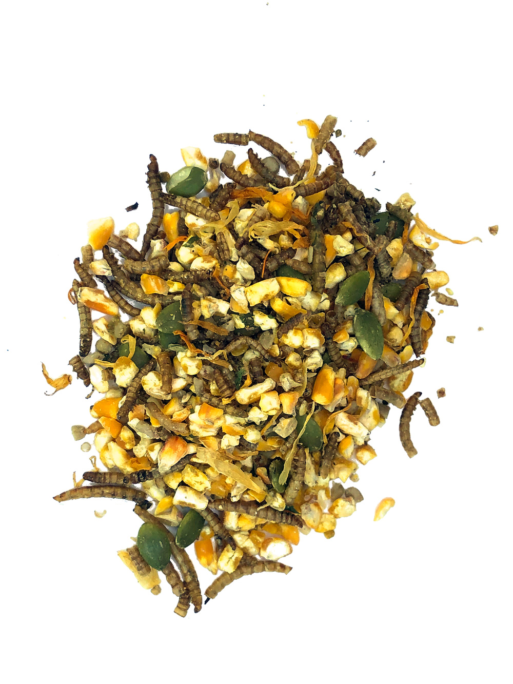 Blend is hand mixed locally with ingredients appropriate for chickens & ducks. These mealworms are produced by a Washington state grower. The quality of the protein is far superior to the average Mealworms available on the market.