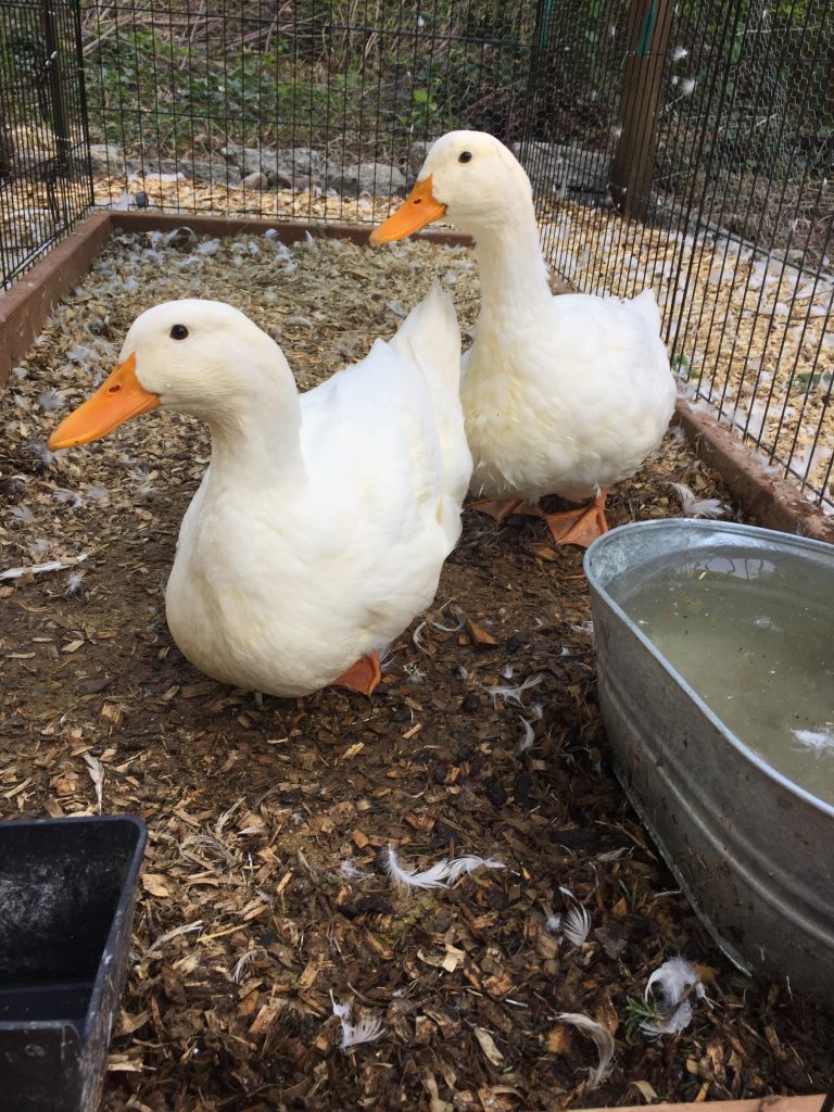 It’s all started when our daughter saved a duck’s life. We were looking after our friend's farm while they were away. They raised Pekin ducks, chickens, goats and pigs, as well as the odd peacock or two. While doing our morning rounds, she noticed one of the ducks struggling to walk. Something was wrong with her leg. She brought her home, gave her a bath and a place to rest. At the vet we learned she had a broken leg. Instead of letting her be harvested, we spent the next eight weeks rehabilitating this special duck. Our friends eventually gifted the duck to us, for having rescued her. We named our wonder ducky “Eileen” because her injury causes her to permanently lean to one side. We found her a duck friend named her Millie. From then on we were hooked and our love affair with ducks cemented. The rest is history. We now have a wonderful aviary in our yard including a small flock of 6 ducks & 12 chickens.
