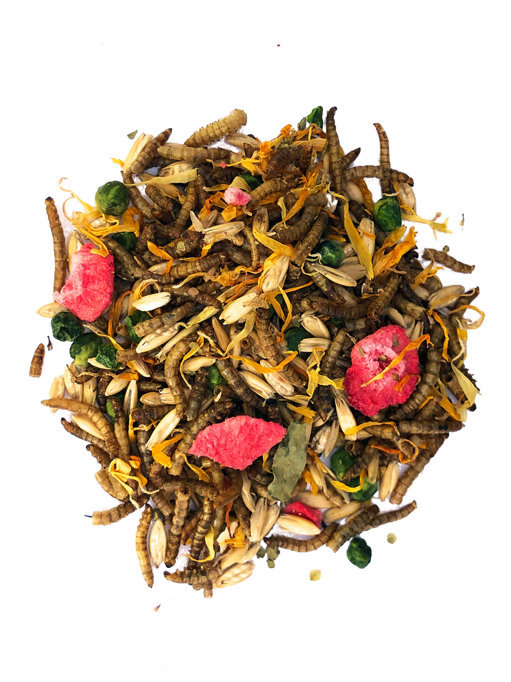 Blend is hand mixed locally with ingredients appropriate for chickens & ducks. These mealworms are produced by a Washington state grower. The quality of the protein is far superior to the average Mealworms available on the market.